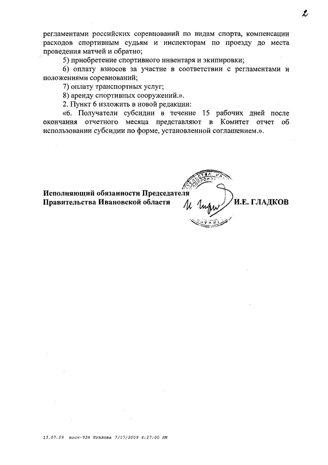 Постановление Правительства Ивановской области от 17.07.2009 N 207-п "О внесении изменений в постановление Правительства Ивановской области от 02.04.2009 N 92-п"