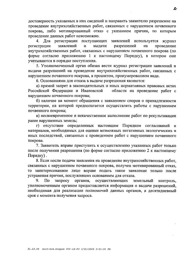 Постановление Правительства Ивановской области от 23.07.2009 N 211-п "О выдаче разрешений на проведение внутрихозяйственных работ, связанных с нарушением почвенного покрова" (вместе с "Порядком выдачи разрешений на проведение внутрихозяйственных работ, связанных с нарушением почвенного покрова")