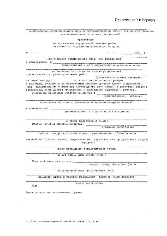 Постановление Правительства Ивановской области от 23.07.2009 N 211-п "О выдаче разрешений на проведение внутрихозяйственных работ, связанных с нарушением почвенного покрова" (вместе с "Порядком выдачи разрешений на проведение внутрихозяйственных работ, связанных с нарушением почвенного покрова")