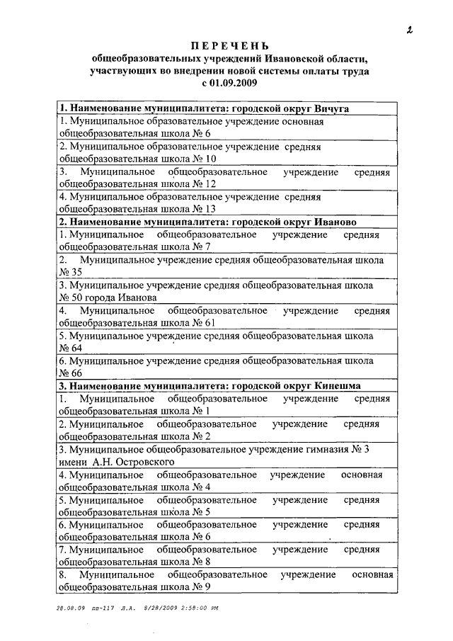 Постановление Правительства Ивановской области от 28.08.2009 N 251-п "О внесении изменений в постановление Правительства Ивановской области от 19.05.2008 N 117-п" (вместе с "Перечнем общеобразовательных учреждений Ивановской области, участвующих во внедрении новой системы оплаты труда с 01.09.2008")
