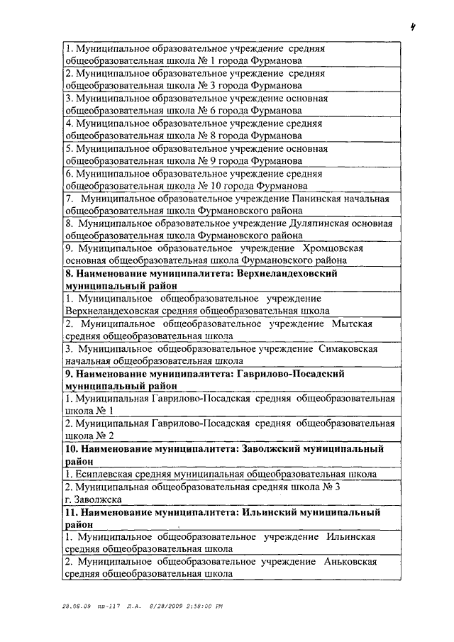 Постановление Правительства Ивановской области от 28.08.2009 N 251-п "О внесении изменений в постановление Правительства Ивановской области от 19.05.2008 N 117-п" (вместе с "Перечнем общеобразовательных учреждений Ивановской области, участвующих во внедрении новой системы оплаты труда с 01.09.2008")