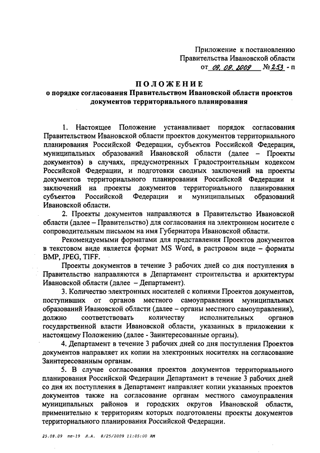 Постановление Правительства Ивановской области от 09.09.2009 N 253-п "Об утверждении Положения о порядке согласования Правительством Ивановской области проектов документов территориального планирования"