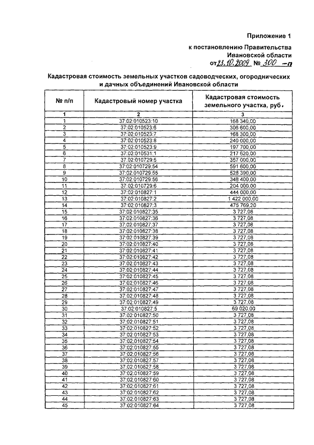 Постановление Правительства Ивановской области от 23.10.2009 N 300-п "Об утверждении результатов государственной кадастровой оценки земель садоводческих, огороднических и дачных объединений Ивановской области"