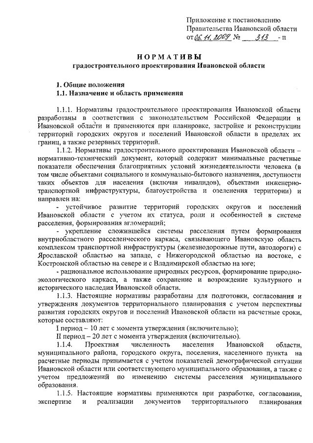 Постановление Правительства Ивановской области от 06.11.2009 N 313-п "Об утверждении нормативов градостроительного проектирования Ивановской области"
