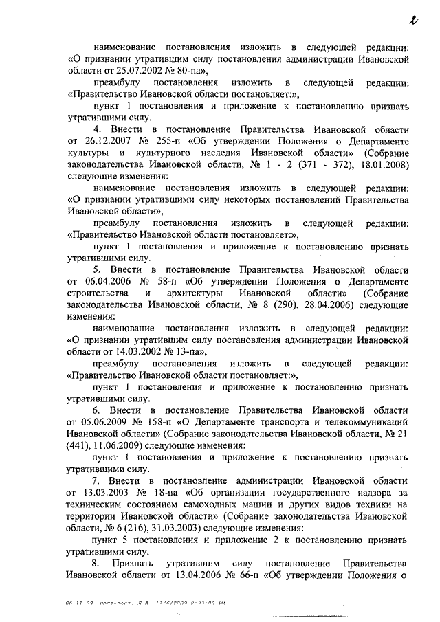Постановление Правительства Ивановской области от 09.11.2009 N 318-п "О некоторых постановлениях администрации Ивановской области и Правительства Ивановской области"