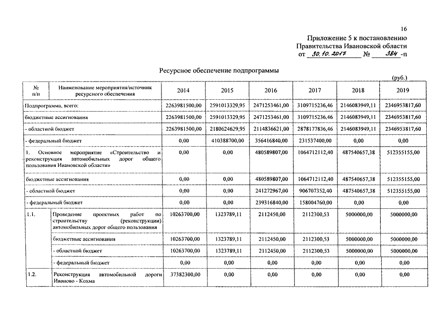 Постановление Правительства Ивановской области от 30.10.2017 N 384-п "О внесении изменений в постановление Правительства Ивановской области от 13.11.2013 N 447-п "Об утверждении государственной программы Ивановской области "Развитие транспортной системы Ивановской области" (вместе с "Паспортом подпрограммы")