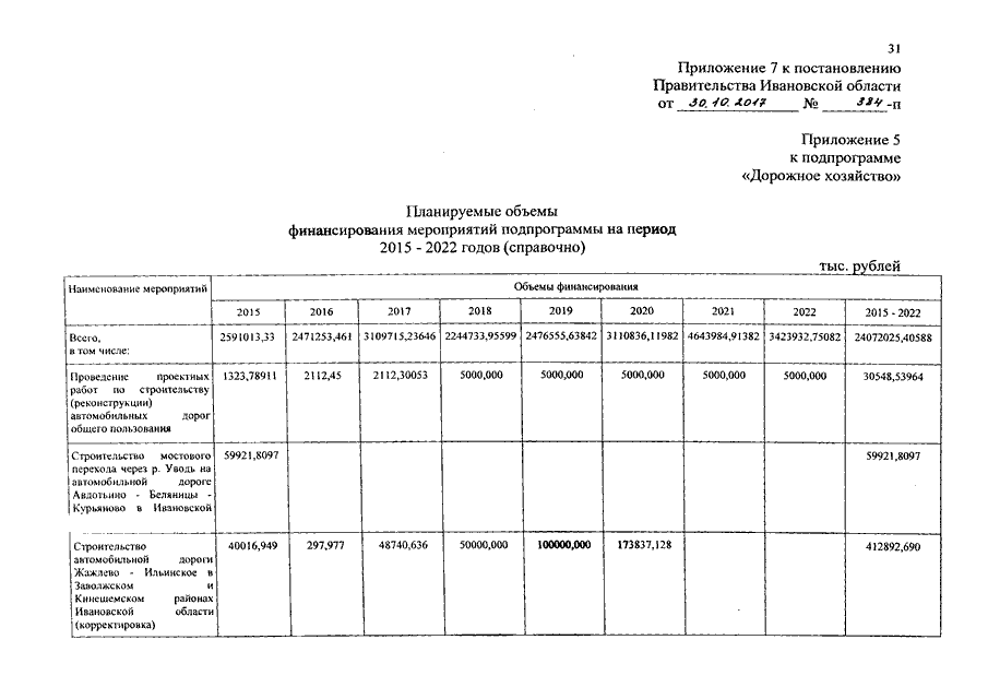 Постановление Правительства Ивановской области от 30.10.2017 N 384-п "О внесении изменений в постановление Правительства Ивановской области от 13.11.2013 N 447-п "Об утверждении государственной программы Ивановской области "Развитие транспортной системы Ивановской области" (вместе с "Паспортом подпрограммы")