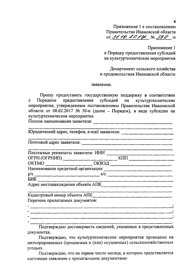 Постановление Правительства Ивановской области от 31.10.2017 N 390-п "О внесении изменений в постановление Правительства Ивановской области от 08.02.2017 N 30-п "Об утверждении Порядка предоставления субсидий на культуртехнические мероприятия"