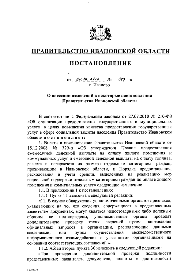 Постановление Правительства Ивановской области от 30.10.2017 N 387-п "О внесении изменений в некоторые постановления Правительства Ивановской области"