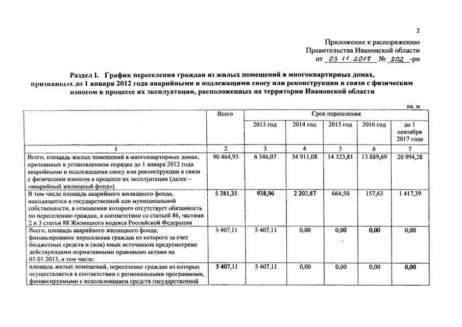 Распоряжение Правительства Ивановской области от 03.11.2017 N 202-рп "О внесении изменения в распоряжение Правительства Ивановской области от 26.03.2013 N 55-рп "Об утверждении плана мероприятий ("дорожной карты") по переселению граждан из аварийного жилищного фонда (жилых помещений в многоквартирных домах, признанных в установленном порядке до 1 января 2012 года аварийными и подлежащими сносу или реконструкции в связи с физическим износом в процессе их эксплуатации)"