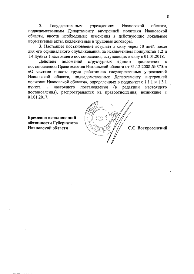 Постановление Правительства Ивановской области от 20.11.2017 N 414-п "О внесении изменений в постановление Правительства Ивановской области от 31.12.2008 N 375-п "О системе оплаты труда работников государственных учреждений Ивановской области, подведомственных Департаменту внутренней политики Ивановской области"