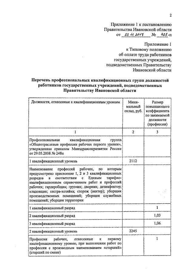 Постановление Правительства Ивановской области от 23.11.2017 N 425-п "О внесении изменений в постановление Правительства Ивановской области от 31.12.2008 N 372-п "О системе оплаты труда работников государственных учреждений, подведомственных Правительству Ивановской области" (вместе с "Перечнем профессиональных квалификационных групп должностей работников государственных учреждений, подведомственных Правительству Ивановской области")