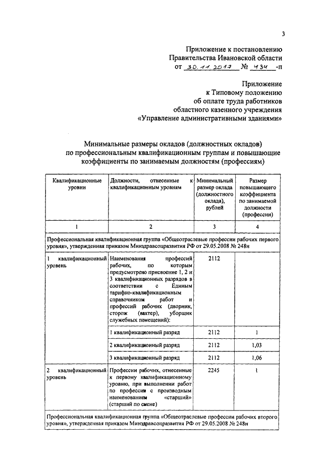 Постановление Правительства Ивановской области от 30.11.2017 N 434-п "О внесении изменений в постановление Правительства Ивановской области от 24.11.2016 N 389-п "О системе оплаты труда работников областного казенного учреждения "Управление административными зданиями"