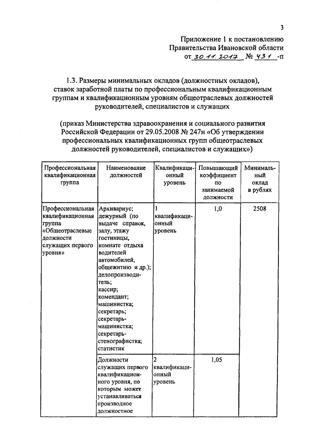 Постановление Правительства Ивановской области от 30.11.2017 N 431-п "О внесении изменений в постановление Правительства Ивановской области от 31.12.2008 N 367-п "О системе оплаты труда работников государственных учреждений Ивановской области, подведомственных Департаменту культуры и туризма Ивановской области"