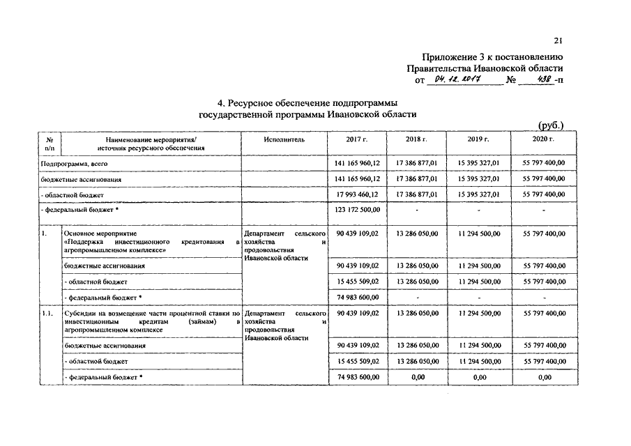 Постановление Правительства Ивановской области от 04.12.2017 N 438-п "О внесении изменений в постановление Правительства Ивановской области от 13.11.2013 N 451-п "Об утверждении государственной программы Ивановской области "Развитие сельского хозяйства и регулирование рынков сельскохозяйственной продукции, сырья и продовольствия Ивановской области"