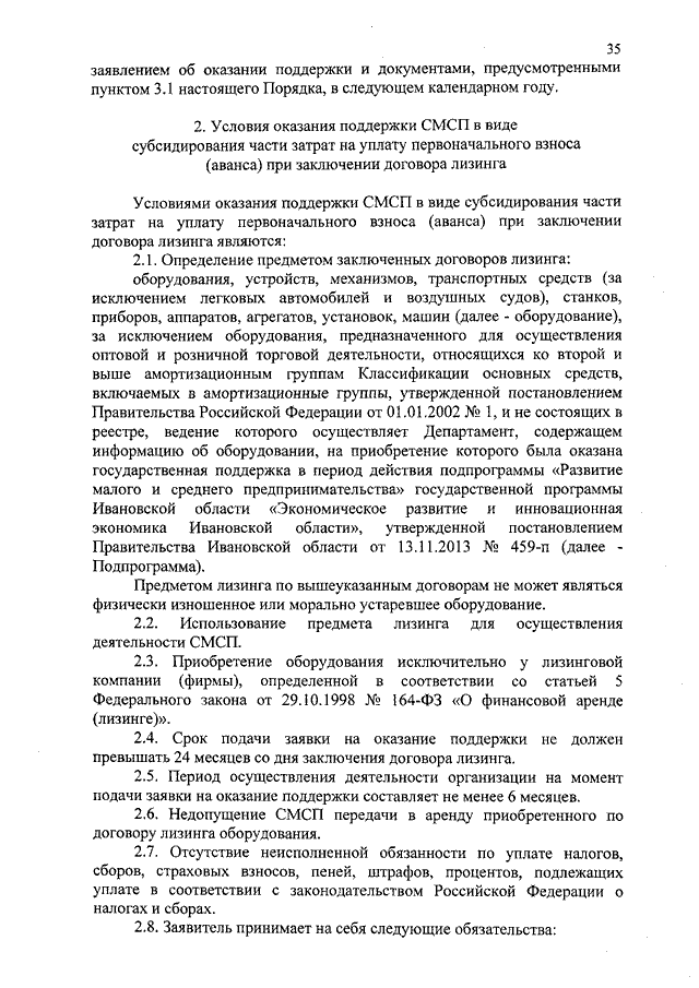 Постановление Правительства Ивановской области от 06.12.2017 N 461-п "О внесении изменений в постановление Правительства Ивановской области от 13.11.2013 N 459-п "Об утверждении государственной программы Ивановской области "Экономическое развитие и инновационная экономика Ивановской области" (вместе с "Порядком рассмотрения заявок, условиями и порядком оказания поддержки субъектам малого и среднего предпринимательства в виде субсидирования части затрат на уплату первоначального взноса (аванса) при заключении договора лизинга", "Порядком рассмотрения заявок, условиями и порядком оказания поддержки субъектам малого и среднего предпринимательства в виде субсидирования части затрат, связанных с приобретением оборудования в целях создания и (или) развития и (или) модернизации производства товаров", "Порядком рассмотрения заявок, условиями и порядком оказания поддержки в виде предоставления целевых грантов начинающим субъектам малого предпринимательства на создание собственного дела", "Порядком предоставления и распределения субсидий бюджетам муниципальных образований на реализацию мероприятий по строительству и (или) реконструкции объектов инфраструктуры, необходимых для реализации новых инвестиционных проектов в моногородах")