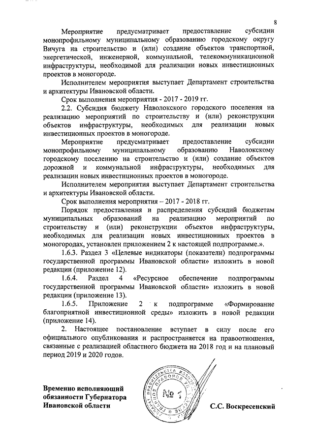 Постановление Правительства Ивановской области от 06.12.2017 N 461-п "О внесении изменений в постановление Правительства Ивановской области от 13.11.2013 N 459-п "Об утверждении государственной программы Ивановской области "Экономическое развитие и инновационная экономика Ивановской области" (вместе с "Порядком рассмотрения заявок, условиями и порядком оказания поддержки субъектам малого и среднего предпринимательства в виде субсидирования части затрат на уплату первоначального взноса (аванса) при заключении договора лизинга", "Порядком рассмотрения заявок, условиями и порядком оказания поддержки субъектам малого и среднего предпринимательства в виде субсидирования части затрат, связанных с приобретением оборудования в целях создания и (или) развития и (или) модернизации производства товаров", "Порядком рассмотрения заявок, условиями и порядком оказания поддержки в виде предоставления целевых грантов начинающим субъектам малого предпринимательства на создание собственного дела", "Порядком предоставления и распределения субсидий бюджетам муниципальных образований на реализацию мероприятий по строительству и (или) реконструкции объектов инфраструктуры, необходимых для реализации новых инвестиционных проектов в моногородах")