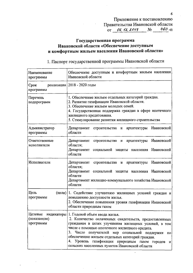 Постановление Правительства Ивановской области от 06.12.2017 N 460-п "Об утверждении государственной программы Ивановской области "Обеспечение доступным и комфортным жильем населения Ивановской области"