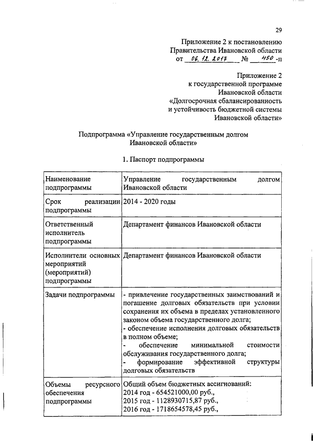 Постановление Правительства Ивановской области от 06.12.2017 N 450-п "О внесении изменений в постановление Правительства Ивановской области от 30.10.2013 N 429-п "Об утверждении государственной программы Ивановской области "Долгосрочная сбалансированность и устойчивость бюджетной системы Ивановской области" (вместе с "Подпрограммой "Управление общественными финансами", "Подпрограммой "Управление государственным долгом Ивановской области")