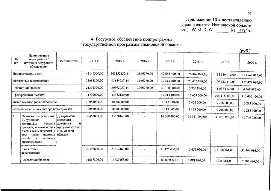Постановление Правительства Ивановской области от 06.12.2017 N 448-п "О внесении изменений в постановление Правительства Ивановской области от 13.11.2013 N 451-п "Об утверждении государственной программы Ивановской области "Развитие сельского хозяйства и регулирование рынков сельскохозяйственной продукции, сырья и продовольствия Ивановской области" (вместе с "Подпрограммой "Предупреждение заноса, распространения и ликвидации африканской чумы свиней на территории Ивановской области")