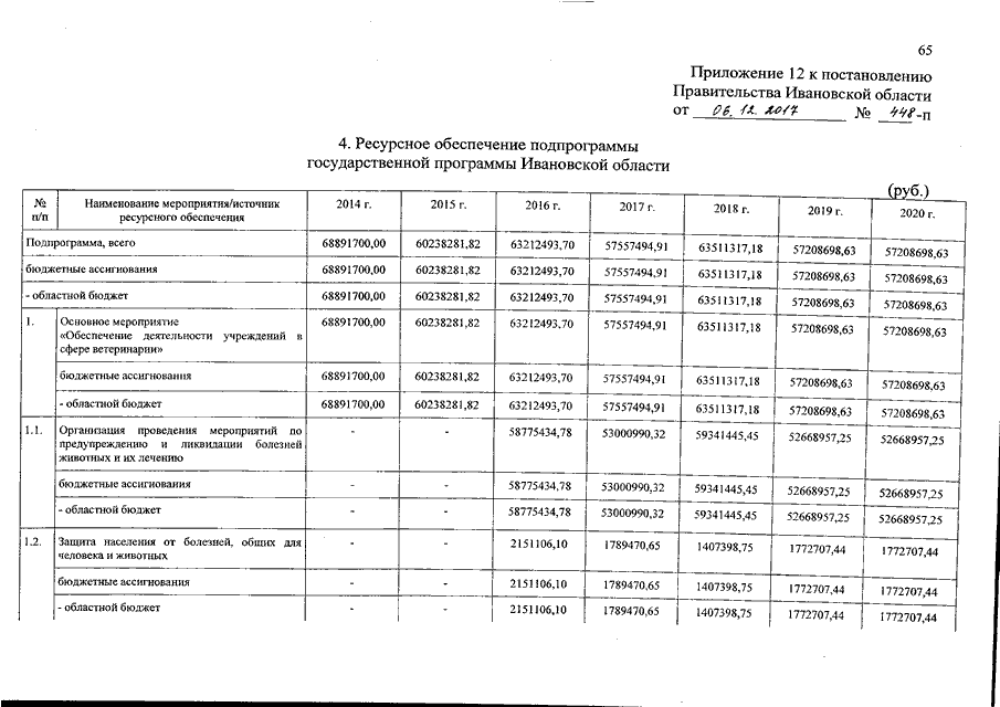 Постановление Правительства Ивановской области от 06.12.2017 N 448-п "О внесении изменений в постановление Правительства Ивановской области от 13.11.2013 N 451-п "Об утверждении государственной программы Ивановской области "Развитие сельского хозяйства и регулирование рынков сельскохозяйственной продукции, сырья и продовольствия Ивановской области" (вместе с "Подпрограммой "Предупреждение заноса, распространения и ликвидации африканской чумы свиней на территории Ивановской области")