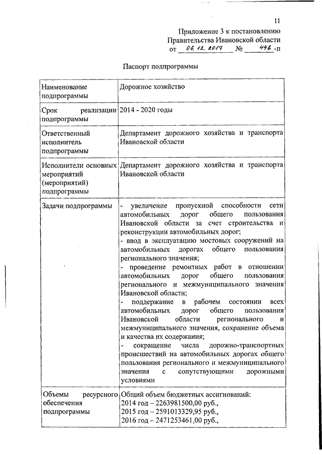Постановление Правительства Ивановской области от 06.12.2017 N 446-п "О внесении изменений в постановление Правительства Ивановской области от 13.11.2013 N 447-п "Об утверждении государственной программы Ивановской области "Развитие транспортной системы Ивановской области" (вместе с "Паспортом подпрограммы")