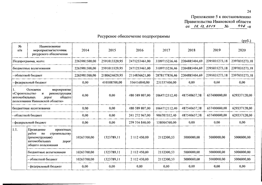 Постановление Правительства Ивановской области от 06.12.2017 N 446-п "О внесении изменений в постановление Правительства Ивановской области от 13.11.2013 N 447-п "Об утверждении государственной программы Ивановской области "Развитие транспортной системы Ивановской области" (вместе с "Паспортом подпрограммы")
