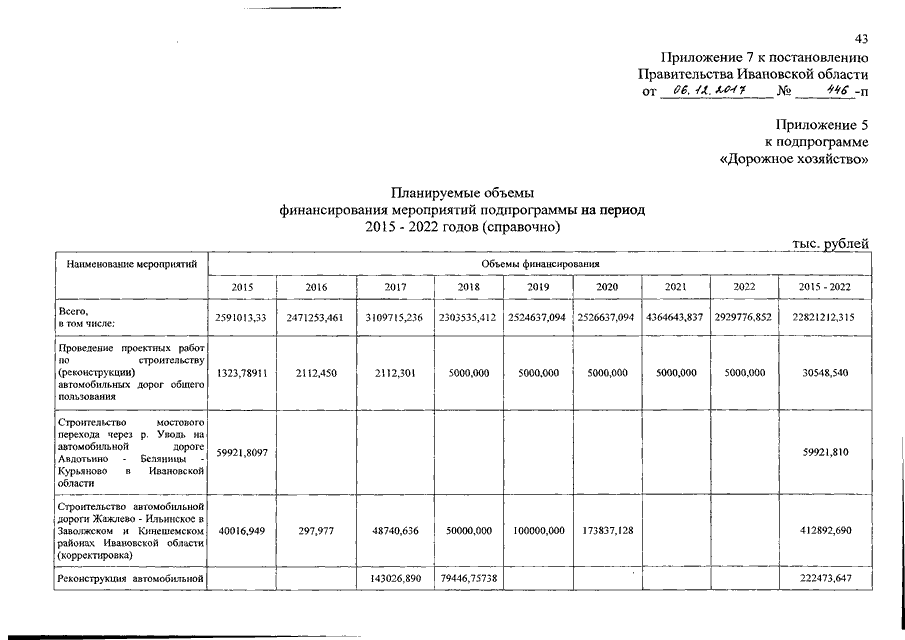 Постановление Правительства Ивановской области от 06.12.2017 N 446-п "О внесении изменений в постановление Правительства Ивановской области от 13.11.2013 N 447-п "Об утверждении государственной программы Ивановской области "Развитие транспортной системы Ивановской области" (вместе с "Паспортом подпрограммы")