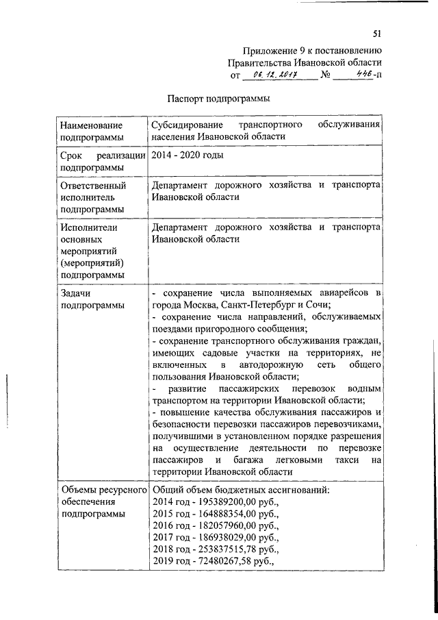 Постановление Правительства Ивановской области от 06.12.2017 N 446-п "О внесении изменений в постановление Правительства Ивановской области от 13.11.2013 N 447-п "Об утверждении государственной программы Ивановской области "Развитие транспортной системы Ивановской области" (вместе с "Паспортом подпрограммы")