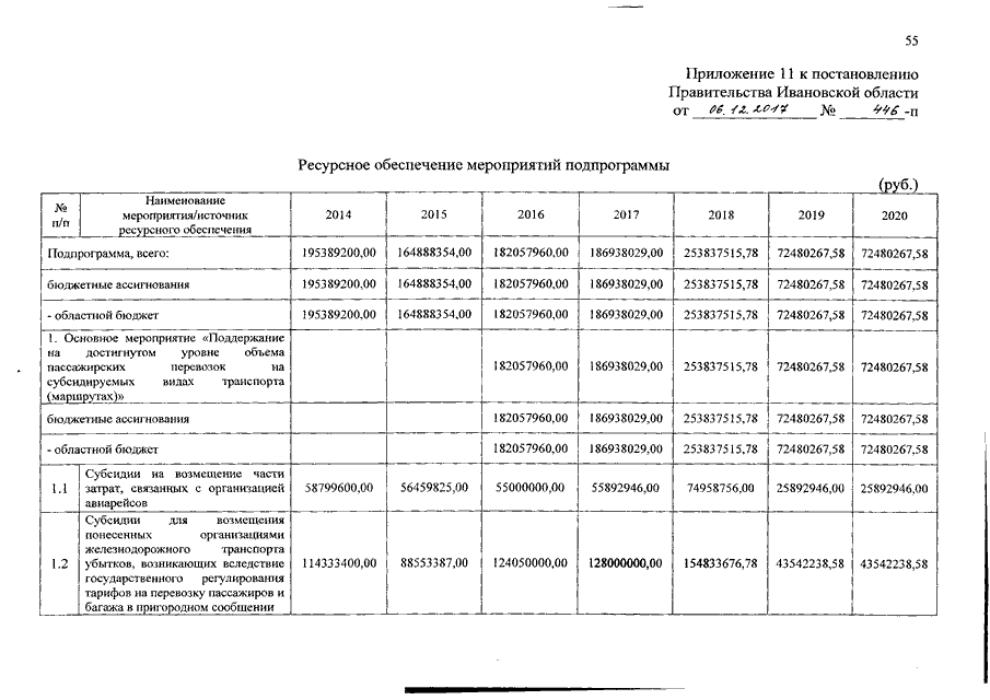 Постановление Правительства Ивановской области от 06.12.2017 N 446-п "О внесении изменений в постановление Правительства Ивановской области от 13.11.2013 N 447-п "Об утверждении государственной программы Ивановской области "Развитие транспортной системы Ивановской области" (вместе с "Паспортом подпрограммы")