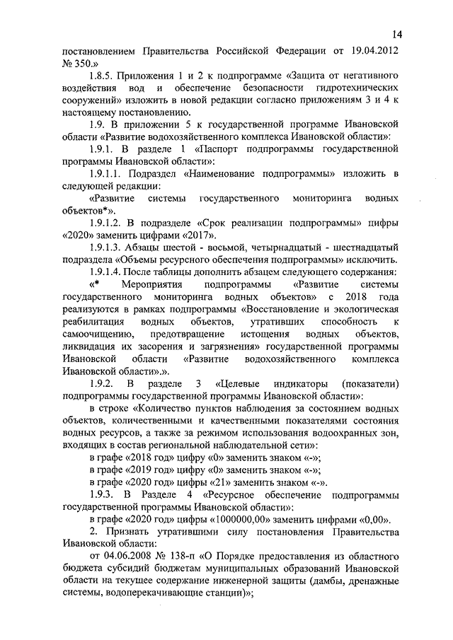 Постановление Правительства Ивановской области от 06.12.2017 N 443-п "О внесении изменений в постановление Правительства Ивановской области от 30.10.2013 N 430-п "Об утверждении государственной программы Ивановской области "Развитие водохозяйственного комплекса Ивановской области" (вместе с "Порядком предоставления и распределения субсидий бюджетам муниципальных образований Ивановской области на восстановление и экологическую реабилитацию водных объектов, утративших способность к самоочищению, предотвращение истощения водных объектов, ликвидацию их засорения и загрязнения", "Порядком предоставления и распределения субсидий из областного бюджета бюджетам муниципальных образований Ивановской области на текущее содержание инженерной защиты (дамбы, дренажные системы, водоперекачивающие станции)", "Порядком предоставления и распределения субсидий бюджетам муниципальных образований Ивановской области на повышение эксплуатационной надежности гидротехнических сооружений", "Порядком предоставления и распределения субсидий бюджетам муниципальных образований Ивановской области на обеспечение населения и объектов экономики сооружениями инженерной защиты")