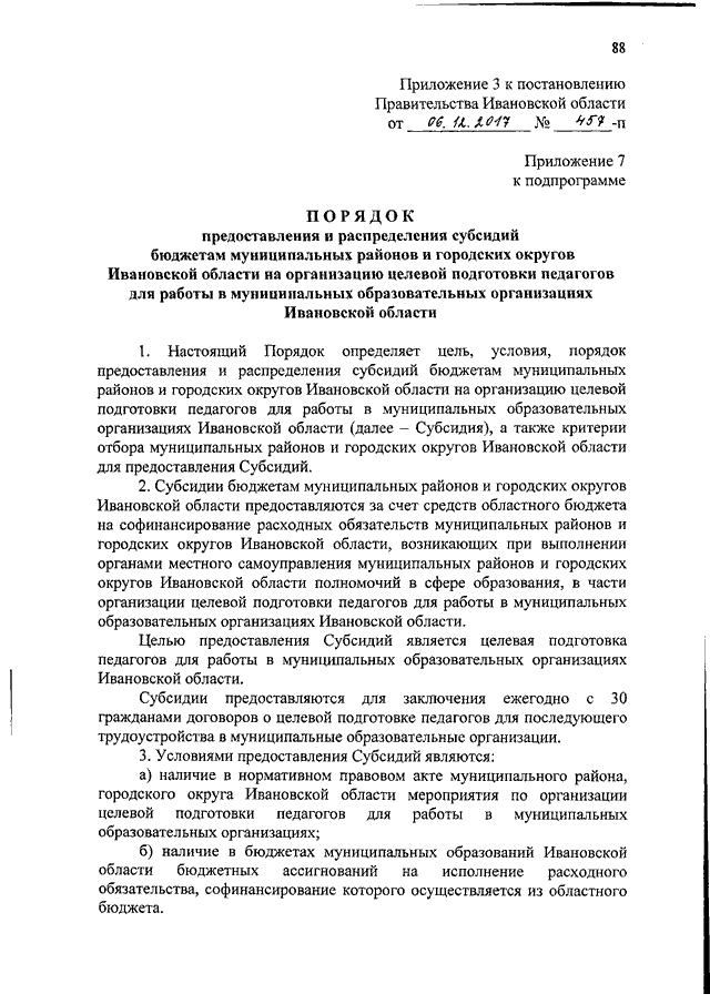 Постановление Правительства Ивановской области от 06.12.2017 N 457-п "О внесении изменений в постановление Правительства Ивановской области от 13.11.2013 N 450-п "Об утверждении государственной программы "Развитие образования Ивановской области" (вместе с "Подпрограммой "Развитие общего образования", "Порядком предоставления и распределения субсидий бюджетам муниципальных районов и городских округов Ивановской области на организацию целевой подготовки педагогов для работы в муниципальных образовательных организациях Ивановской области", "Порядком предоставления и распределения бюджетам муниципальных районов и городских округов Ивановской области субсидий на реализацию мероприятий по укреплению материально-технической базы и оснащение оборудованием муниципальных детских школ искусств")