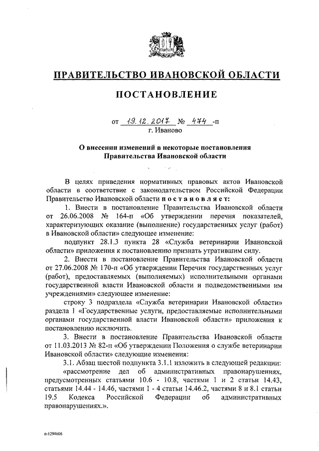 Постановление Правительства Ивановской области от 19.12.2017 N 474-п "О внесении изменений в некоторые постановления Правительства Ивановской области"