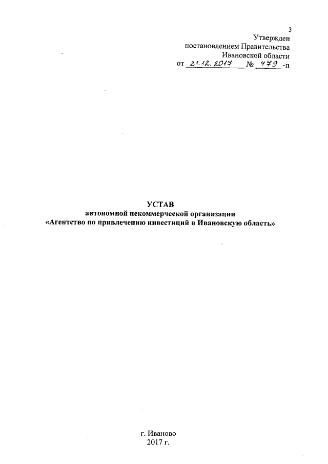 Постановление Правительства Ивановской области от 21.12.2017 N 479-п "О создании автономной некоммерческой организации "Агентство по привлечению инвестиций в Ивановскую область"
