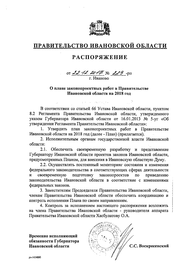 Распоряжение Правительства Ивановской области от 22.12.2017 N 229-рп "О плане законопроектных работ в Правительстве Ивановской области на 2018 год"