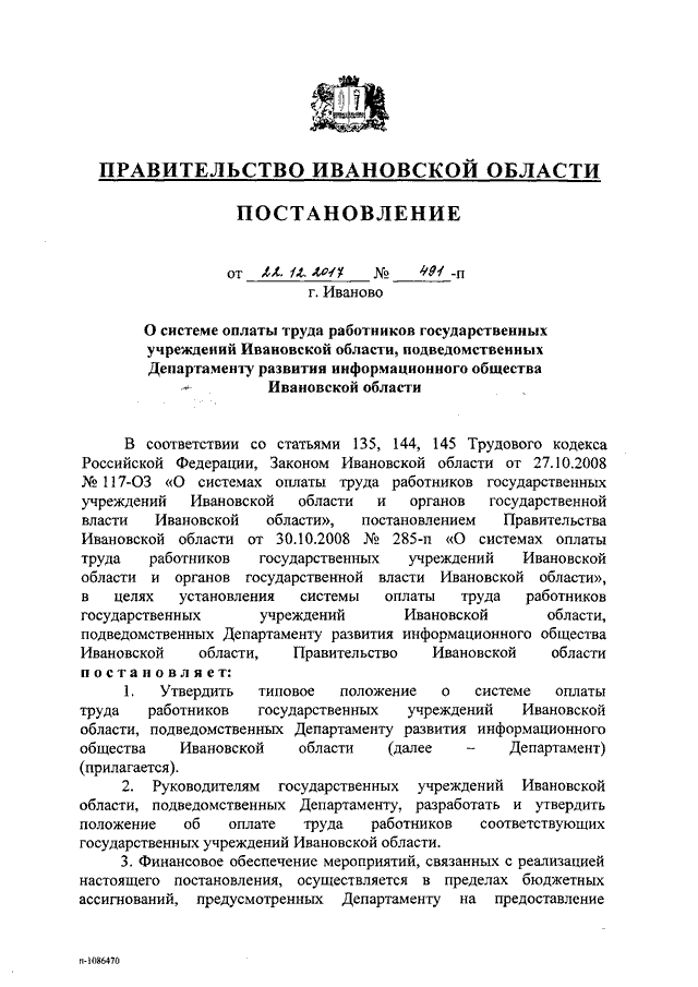 Постановление Правительства Ивановской области от 22.12.2017 N 491-п "О системе оплаты труда работников государственных учреждений Ивановской области, подведомственных Департаменту развития информационного общества Ивановской области" (вместе с "Типовым положением о системе оплаты труда работников государственных учреждений Ивановской области, подведомственных Департаменту развития информационного общества Ивановской области")