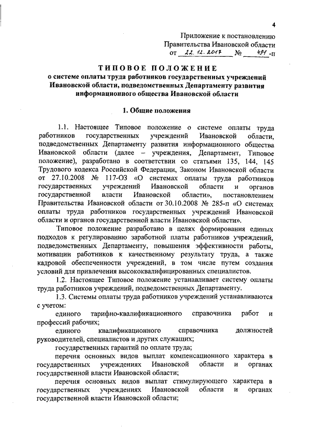 Постановление Правительства Ивановской области от 22.12.2017 N 491-п "О системе оплаты труда работников государственных учреждений Ивановской области, подведомственных Департаменту развития информационного общества Ивановской области" (вместе с "Типовым положением о системе оплаты труда работников государственных учреждений Ивановской области, подведомственных Департаменту развития информационного общества Ивановской области")
