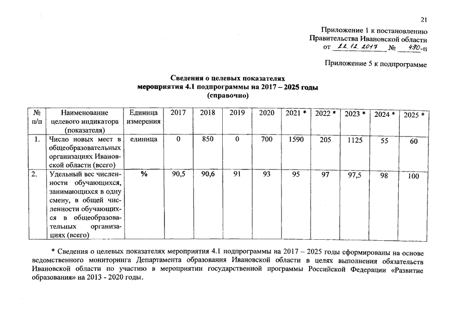 Постановление Правительства Ивановской области от 22.12.2017 N 490-п "О внесении изменений в постановление Правительства Ивановской области от 13.11.2013 N 450-п "Об утверждении государственной программы "Развитие образования Ивановской области" (вместе с "Порядком предоставления и распределения субсидий бюджетам муниципальных районов и городских округов Ивановской области на реализацию мероприятий по созданию условий, обеспечивающих доступность дополнительных общеобразовательных программ естественно-научной и технической направленности для обучающихся")