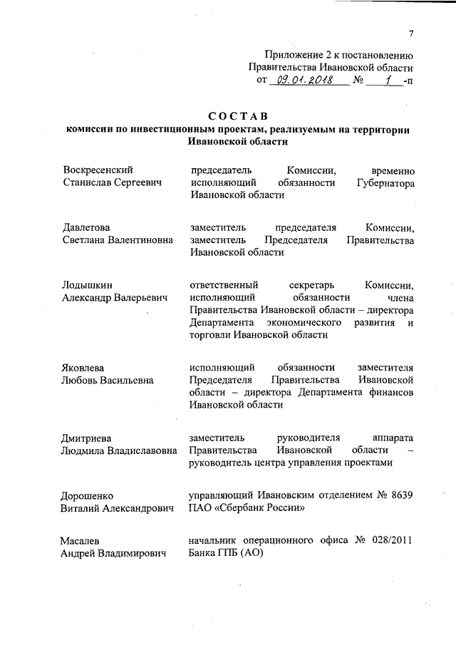 Постановление Правительства Ивановской области от 09.01.2018 N 1-п "О создании комиссии по инвестиционным проектам, реализуемым на территории Ивановской области" (вместе с "Положением о комиссии по инвестиционным проектам, реализуемым на территории Ивановской области")