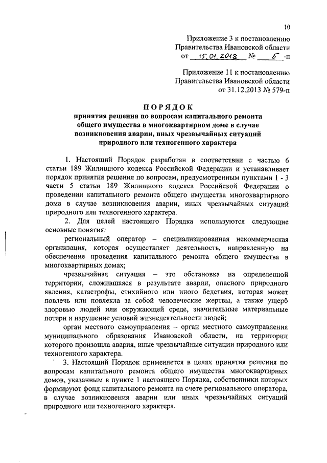 Постановление Правительства Ивановской области от 15.01.2018 N 5-п "О внесении изменений в постановление Правительства Ивановской области от 31.12.2013 N 579-п "Об утверждении порядков, регулирующих отношения в сфере обеспечения проведения капитального ремонта общего имущества в многоквартирных домах, расположенных на территории Ивановской области" (вместе с "Порядком определения невозможности оказания услуг и (или) выполнения работ по капитальному ремонту общего имущества в многоквартирном доме в соответствии с региональной программой капитального ремонта общего имущества в многоквартирных домах, расположенных на территории Ивановской области, и установления фактов воспрепятствования проведению работ по капитальному ремонту", "Порядком представления собственникам помещений в многоквартирном доме предложений, связанных с проведением капитального ремонта общего имущества в многоквартирном доме в соответствии с региональной программой капитального ремонта общего имущества в многоквартирных домах, расположенных на территории Ивановской области", "Порядком принятия решения по вопросам капитального ремонта общего имущества в многоквартирном доме в случае возникновения аварии, иных чрезвычайных ситуаций природного или техногенного характера")