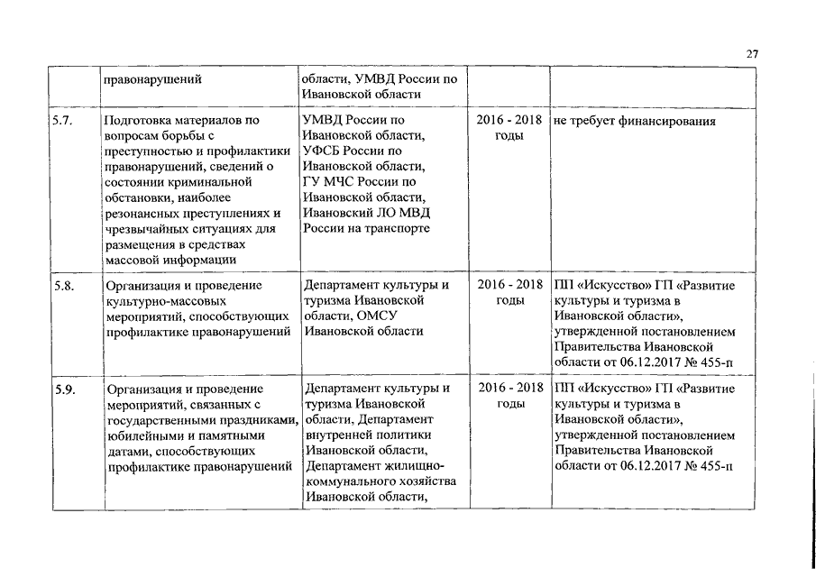 Распоряжение Правительства Ивановской области от 29.12.2017 N 240-рп "О внесении изменения в распоряжение Правительства Ивановской области от 30.12.2015 N 314-рп "Об утверждении плана (программы) межведомственных мероприятий по профилактике правонарушений и борьбе с преступностью на территории Ивановской области на 2016 - 2018 годы"
