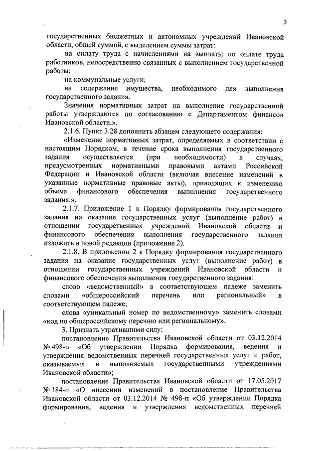 Постановление Правительства Ивановской области от 15.01.2018 N 6-п "Об отдельных вопросах формирования государственного (муниципального) задания на оказание государственных (муниципальных) услуг (выполнение работ)" (вместе с "Порядком формирования, ведения и утверждения регионального перечня (классификатора) государственных (муниципальных) услуг, не включенных в общероссийские базовые (отраслевые) перечни (классификаторы) государственных и муниципальных услуг, и работ, оказание и выполнение которых предусмотрено нормативными правовыми актами Ивановской области (муниципальными правовыми актами)")