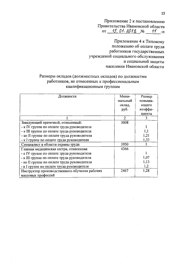 Постановление Правительства Ивановской области от 15.01.2018 N 11-п "О внесении изменений в постановление Правительства Ивановской области от 31.12.2008 N 366-п "О системе оплаты труда работников государственных учреждений системы социальной защиты населения Ивановской области" (вместе с "Перечнем профессиональных квалификационных групп должностей работников государственных учреждений системы социальной защиты населения Ивановской области", "Перечнем профессиональных квалификационных групп должностей работников государственных образовательных учреждений для детей-сирот и детей, оставшихся без попечения родителей, Ивановской области")