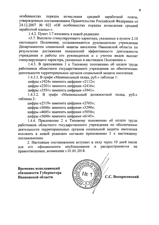 Постановление Правительства Ивановской области от 15.01.2018 N 11-п "О внесении изменений в постановление Правительства Ивановской области от 31.12.2008 N 366-п "О системе оплаты труда работников государственных учреждений системы социальной защиты населения Ивановской области" (вместе с "Перечнем профессиональных квалификационных групп должностей работников государственных учреждений системы социальной защиты населения Ивановской области", "Перечнем профессиональных квалификационных групп должностей работников государственных образовательных учреждений для детей-сирот и детей, оставшихся без попечения родителей, Ивановской области")