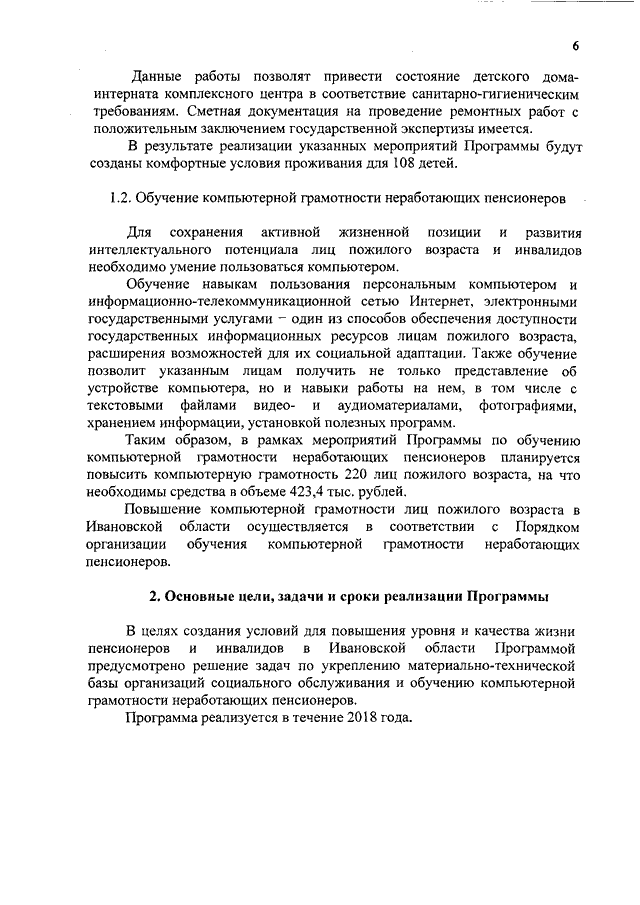 Постановление Правительства Ивановской области от 19.01.2018 N 14-п "Об утверждении социальной программы Ивановской области "Укрепление материально-технической базы организаций социального обслуживания и обучение компьютерной грамотности неработающих пенсионеров в 2018 году" и Порядка формирования обучения компьютерной грамотности неработающих пенсионеров"