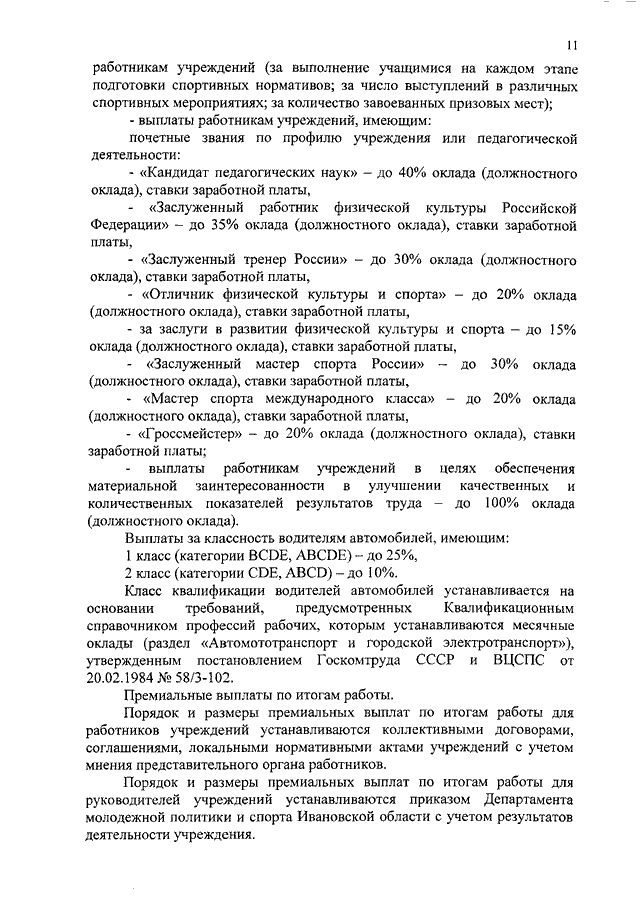 Постановление Правительства Ивановской области от 24.01.2018 N 20-п "О внесении изменений в постановление Правительства Ивановской области от 31.12.2008 N 378-п "О системе оплаты труда работников государственных образовательных учреждений Ивановской области, подведомственных Департаменту спорта и туризма Ивановской области" (вместе с "Порядком, условиями и размерами установления выплат стимулирующего характера")