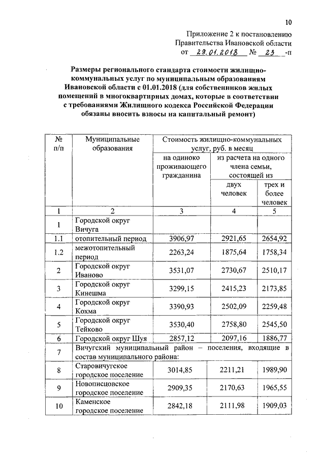 Постановление Правительства Ивановской области от 29.01.2018 N 23-п "Об установлении размеров региональных стандартов стоимости жилищно-коммунальных услуг"