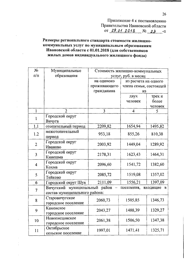 Постановление Правительства Ивановской области от 29.01.2018 N 23-п "Об установлении размеров региональных стандартов стоимости жилищно-коммунальных услуг"