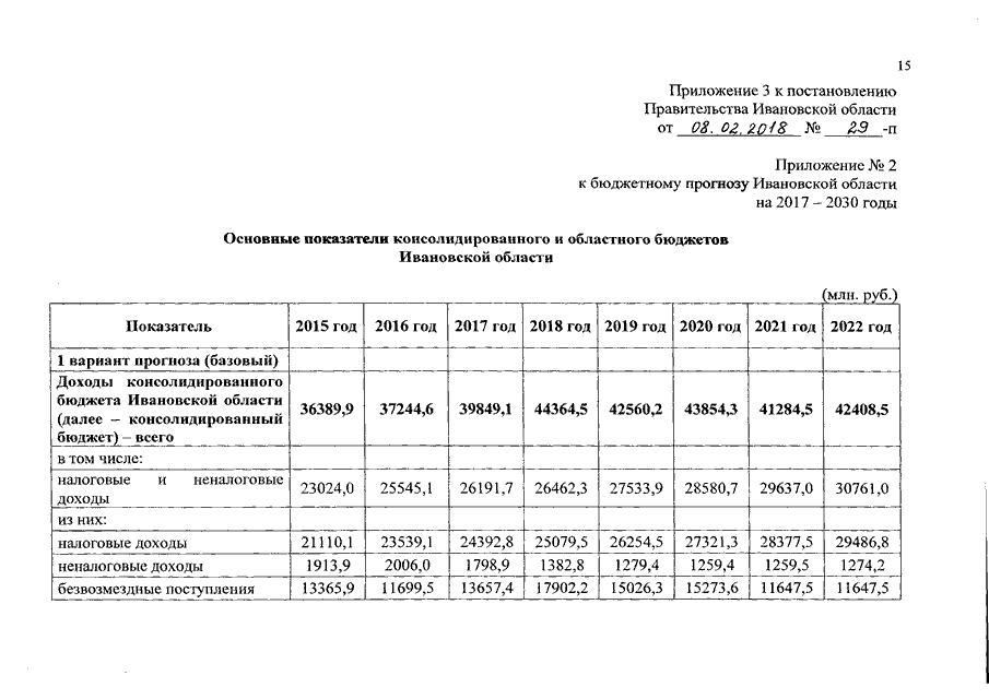 Постановление Правительства Ивановской области от 08.02.2018 N 29-п "О внесении изменений в постановление Правительства Ивановской области от 15.02.2017 N 41-п "Об утверждении бюджетного прогноза Ивановской области на 2017 - 2030 годы"
