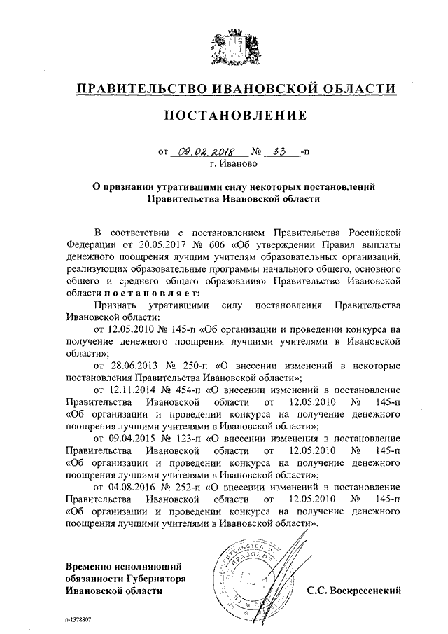 Постановление Правительства Ивановской области от 09.02.2018 N 33-п "О признании утратившими силу некоторых постановлений Правительства Ивановской области"